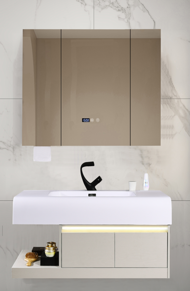 6082 High-End Modern Bathroom Vanity with Smart LED Mirror for Hotel & Home