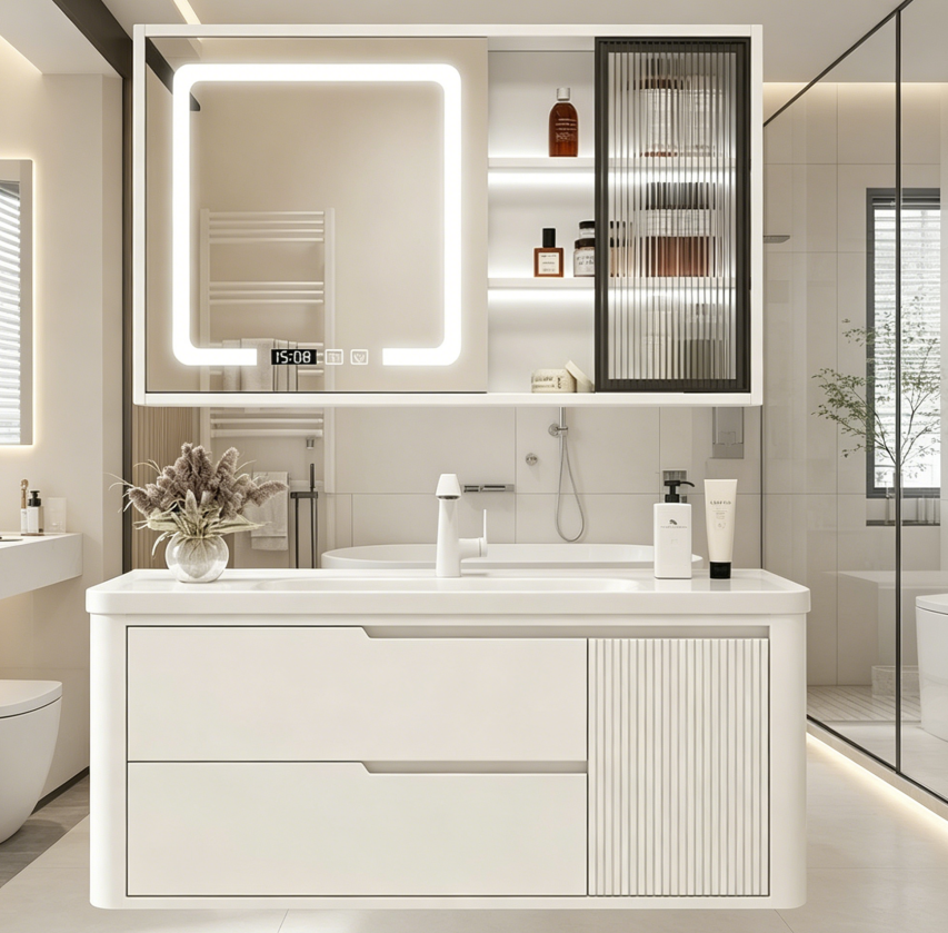 M-003 Modern Cream Style Bathroom Vanity with Smart LED Mirror Cabinet