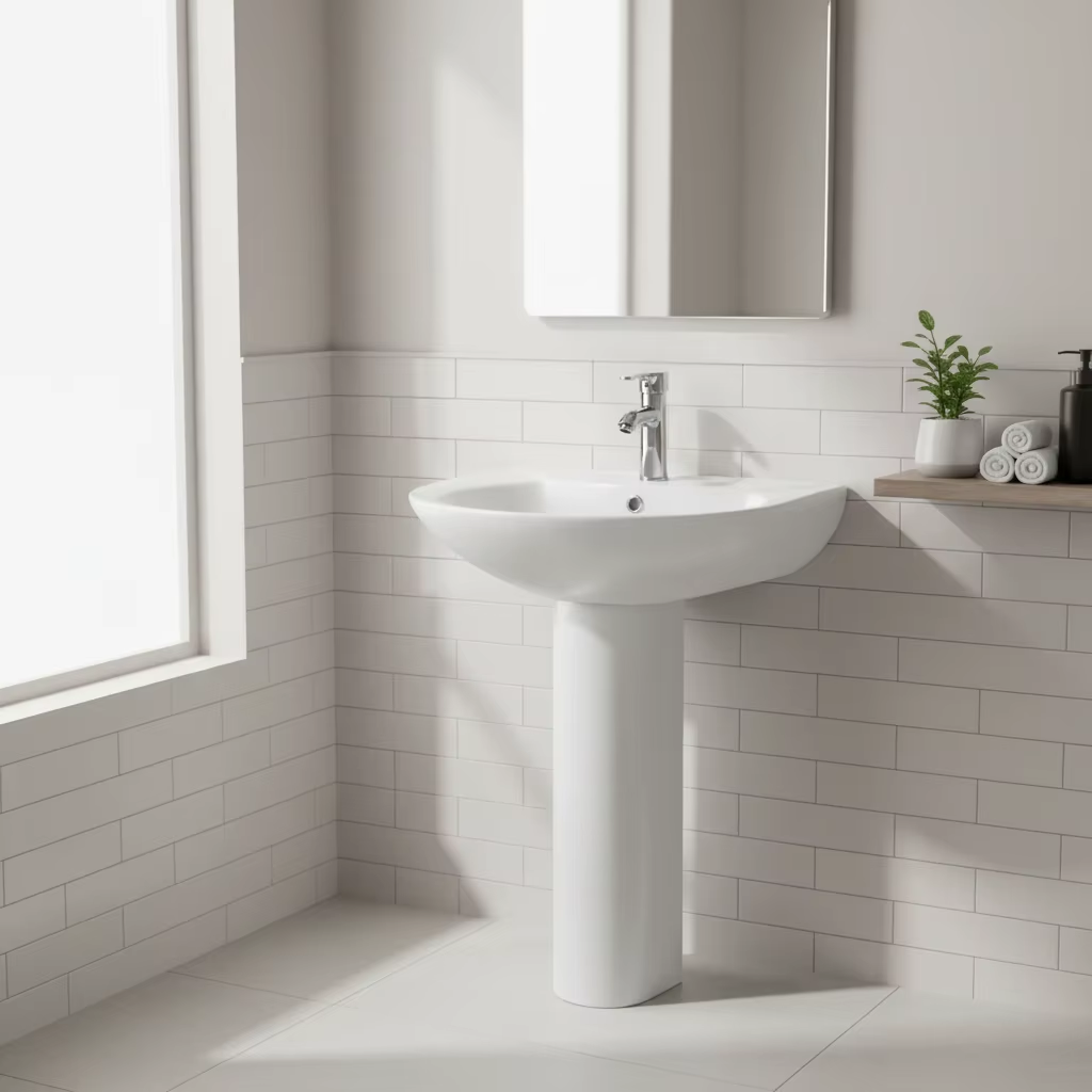 P227 Modern Pedestal Sink in High Glossy White