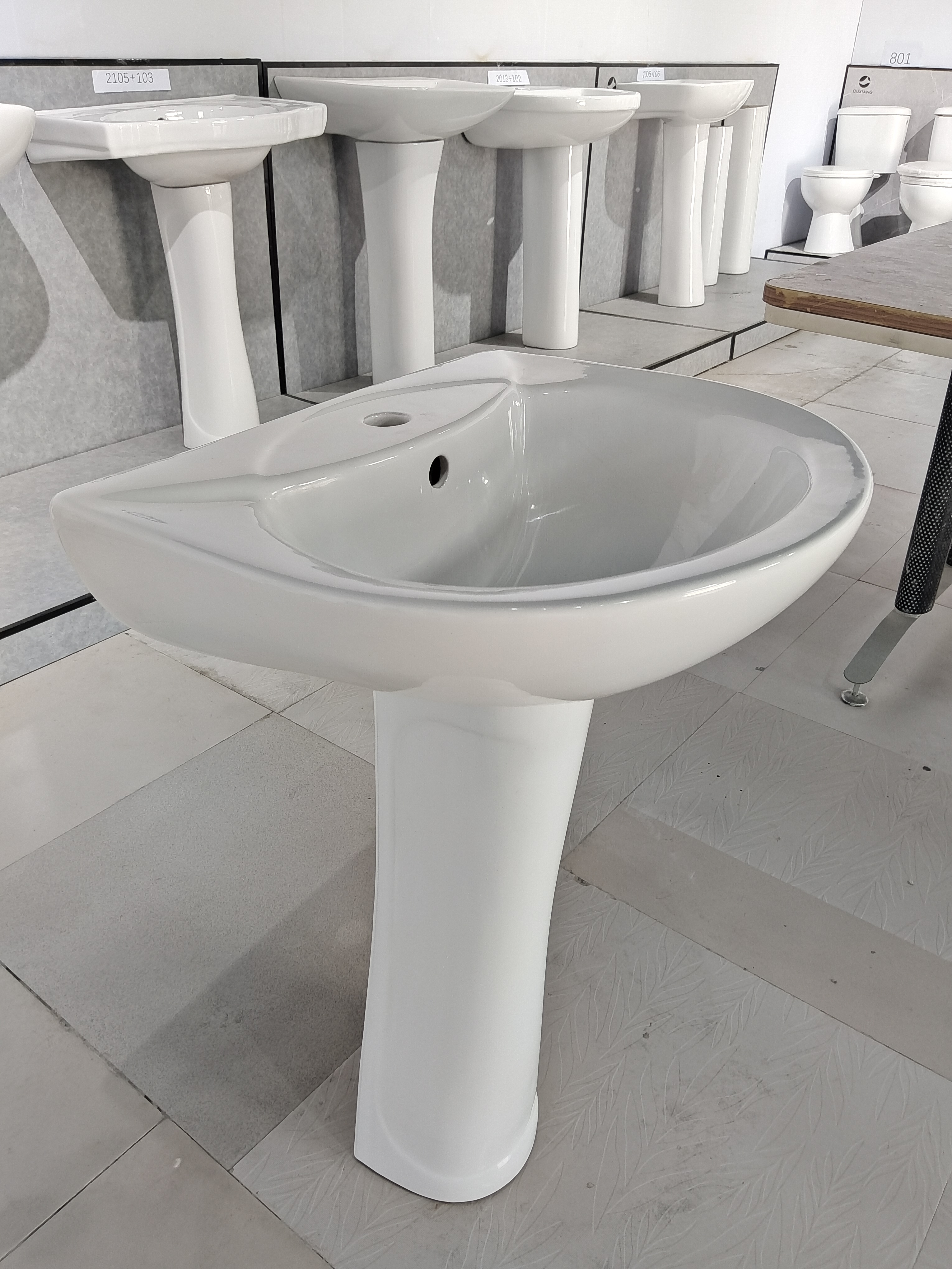 P228 Modern Design Oval Shape Ceramic Pedestal Bathroom Sink in White Color Easy Clean Sanitary